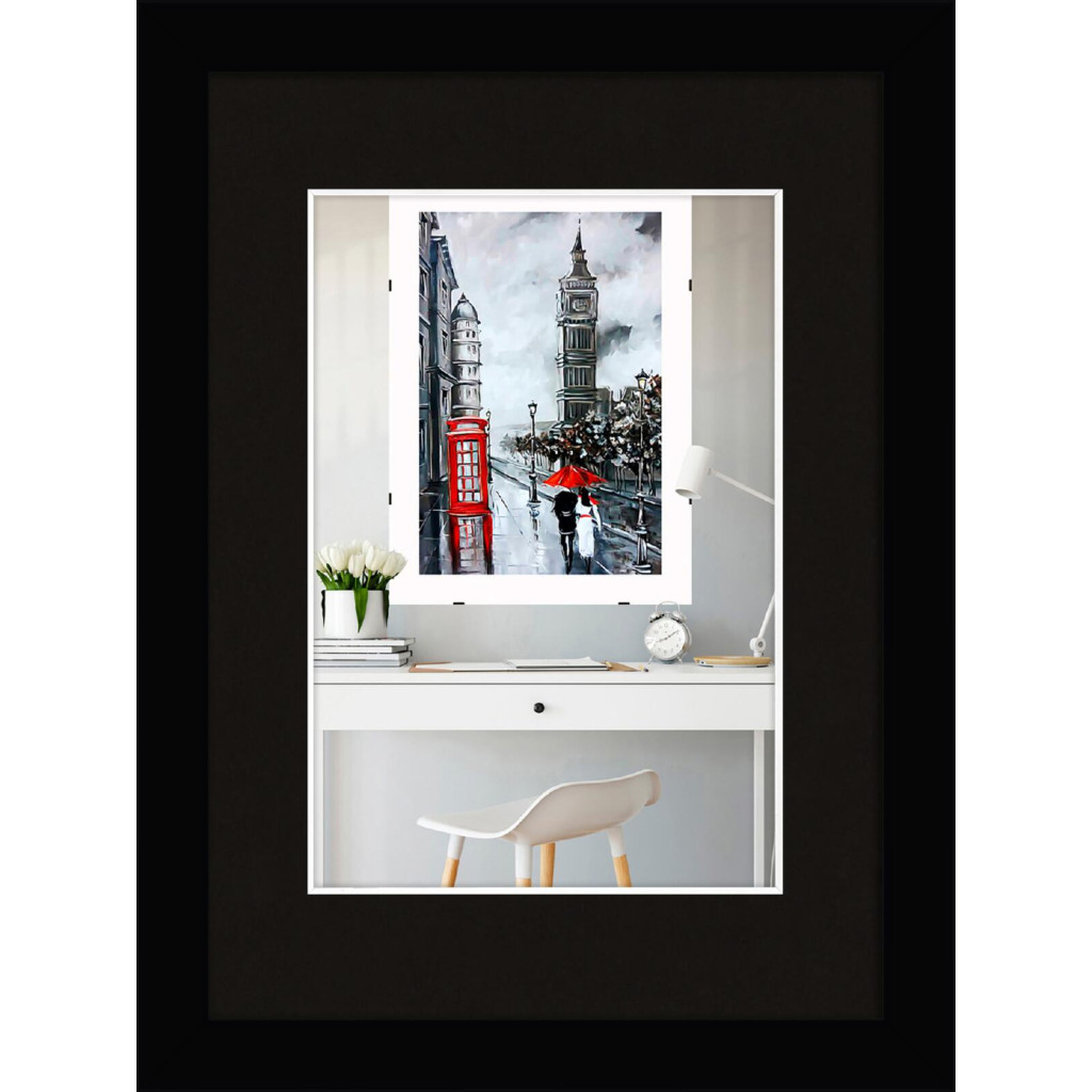 Фоторамка дерев'яна 15х21 під фото 10х15 багет: DL1805-01 Чорний (з глянцевим склом 1-1.5мм, паспарту чорне, двп з ніжкою) EmojiFrame