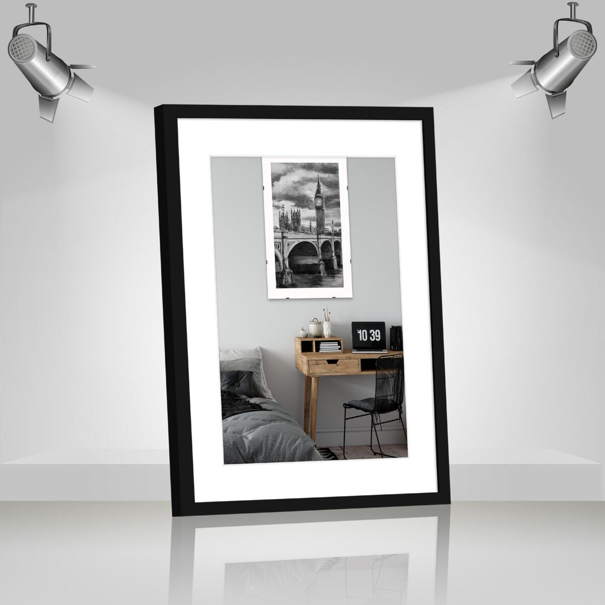 Рамка для фото дерев'яна 40х50 під фото 30х40 багет: DL1805-01 Чорний (з глянцевим склом 1-1.5мм, паспарту біле, двп) EmojiFrame