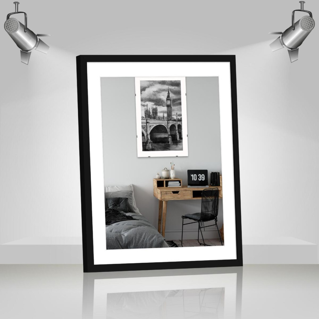 Рамка для фото дерев'яна 50х60 під фото 40х50 багет: DL1805-01 Чорний (з глянцевим прозорим пластиком 0.8мм, паспарту біле, двп) EmojiFrame