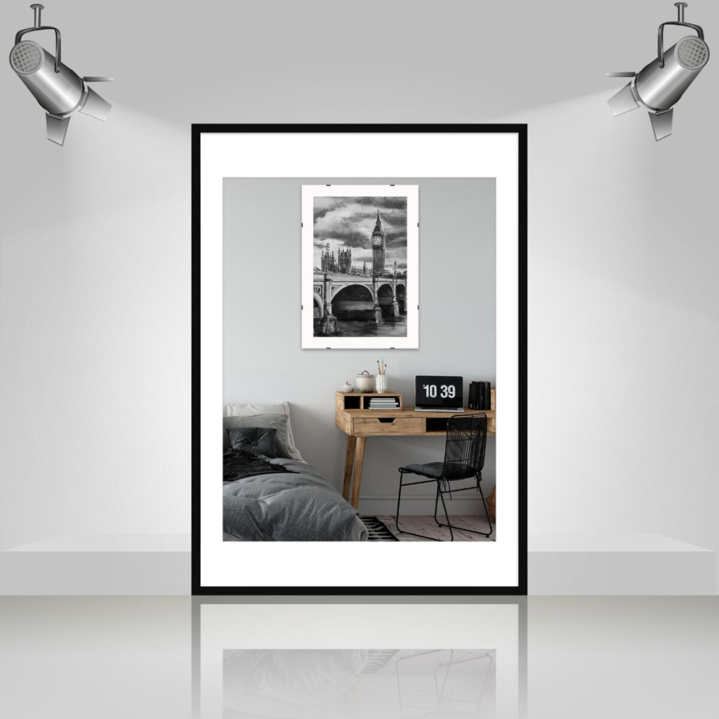 Рамка для фото дерев'яна 70х100 під фото 60х80 багет: DL1805-01 Чорний (з глянцевим склом 1-1.5мм, паспарту біле, двп) EmojiFrame