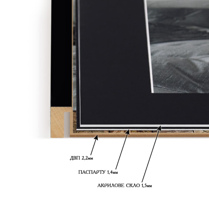 Рамка для фото дерев'яна 70х100 під фото 60х80 багет: DL1805-01 Чорний (з акриловим склом 1.5мм, паспарту чорне, двп) EmojiFrame