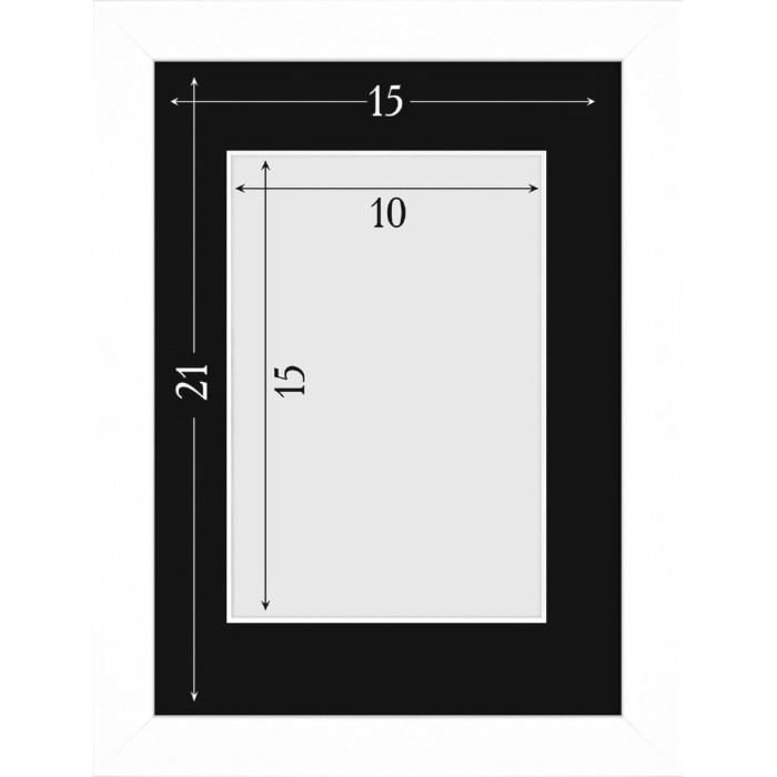 Рамка для фото дерев'яна 15х21 під фото 10х15 багет: DL1805-02 Білий (з акриловим склом 1.5мм, паспарту чорне, двп з ніжкою) EmojiFrame