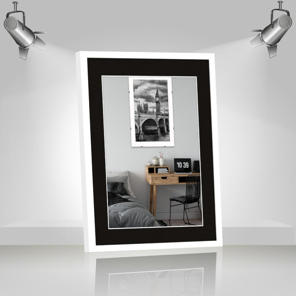 Рамка для фото дерев'яна 40х50 під фото 30х40 багет: DL1805-02 Білий (з антивідблисковим склом 2мм, паспарту чорне, двп) EmojiFrame