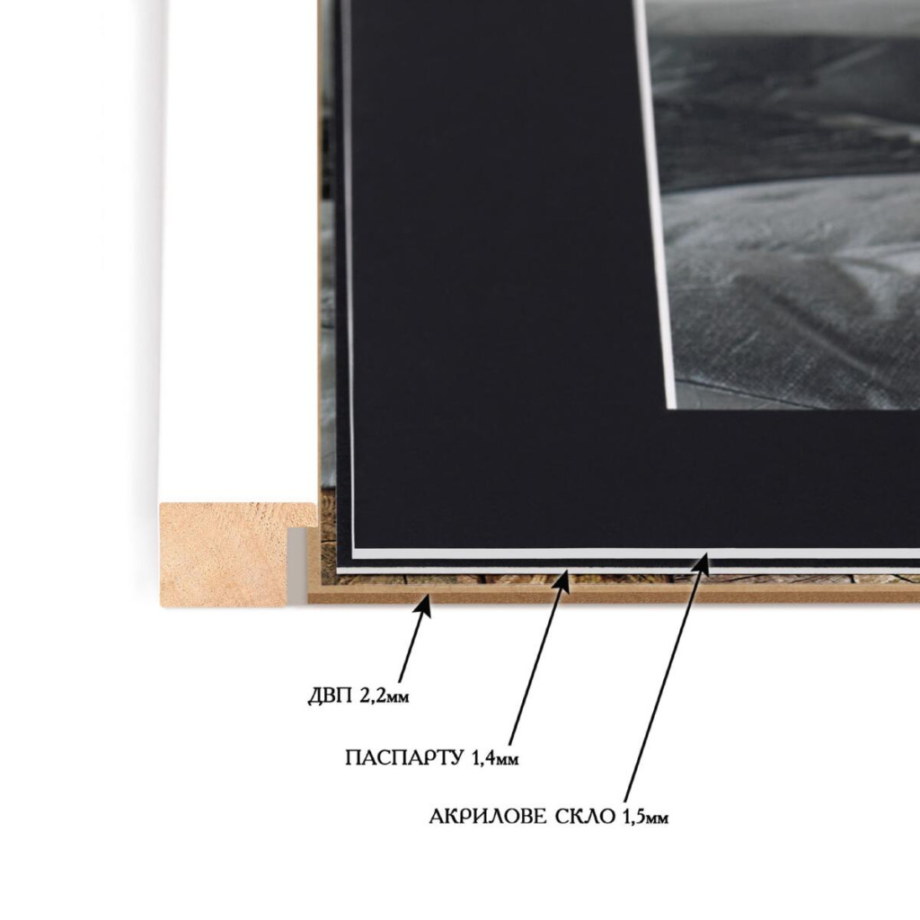 Рамка для фото дерев'яна 50х60 під фото 40х50 багет: DL3005-01 Білий (з акриловим склом 1.5мм, паспарту чорне, двп) EmojiFrame