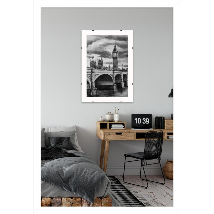 Фоторамка дерев'яна 60х90 багет: DL3005-01 Білий (з антивідблисковим склом 2мм, двп) EmojiFrame