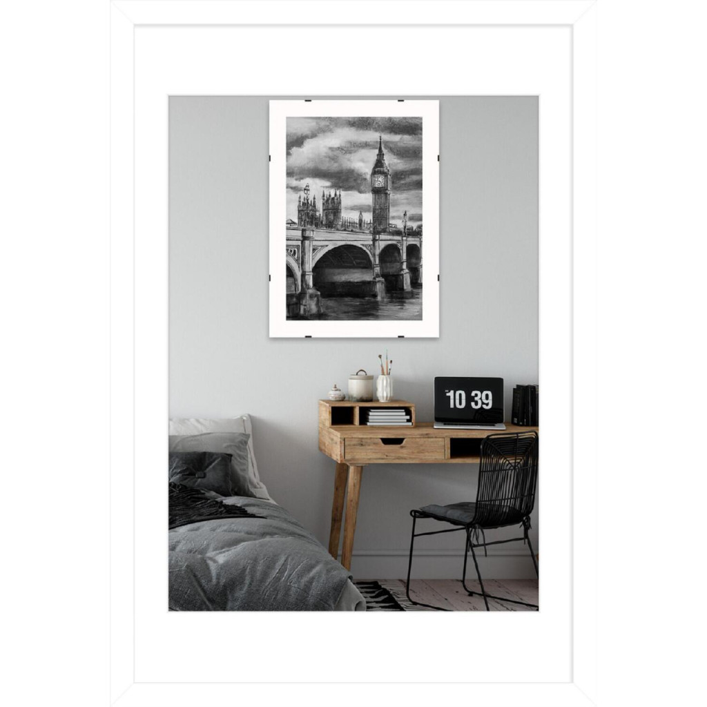 Рамка для фото дерев'яна 60х90 під фото 50х70 багет: DL3005-01 Білий (з глянцевим прозорим пластиком 0.8мм, паспарту біле, двп) EmojiFrame