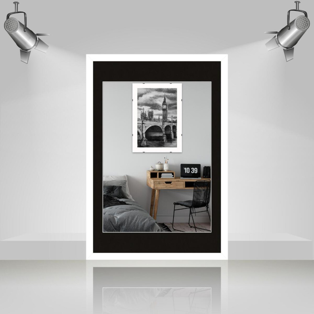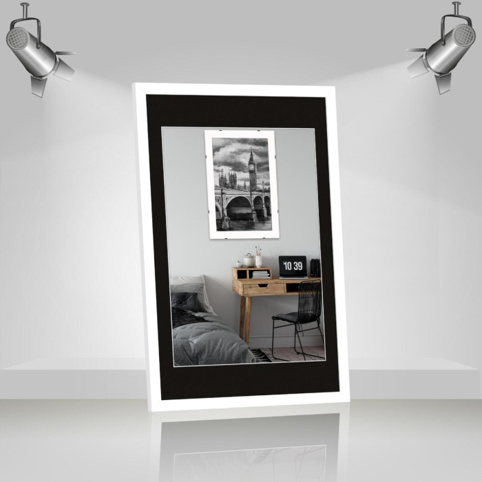 Рамка для фото дерев'яна 60х90 під фото 50х70 багет: DL3005-01 Білий (з акриловим склом 1.5мм, паспарту чорне, двп) EmojiFrame