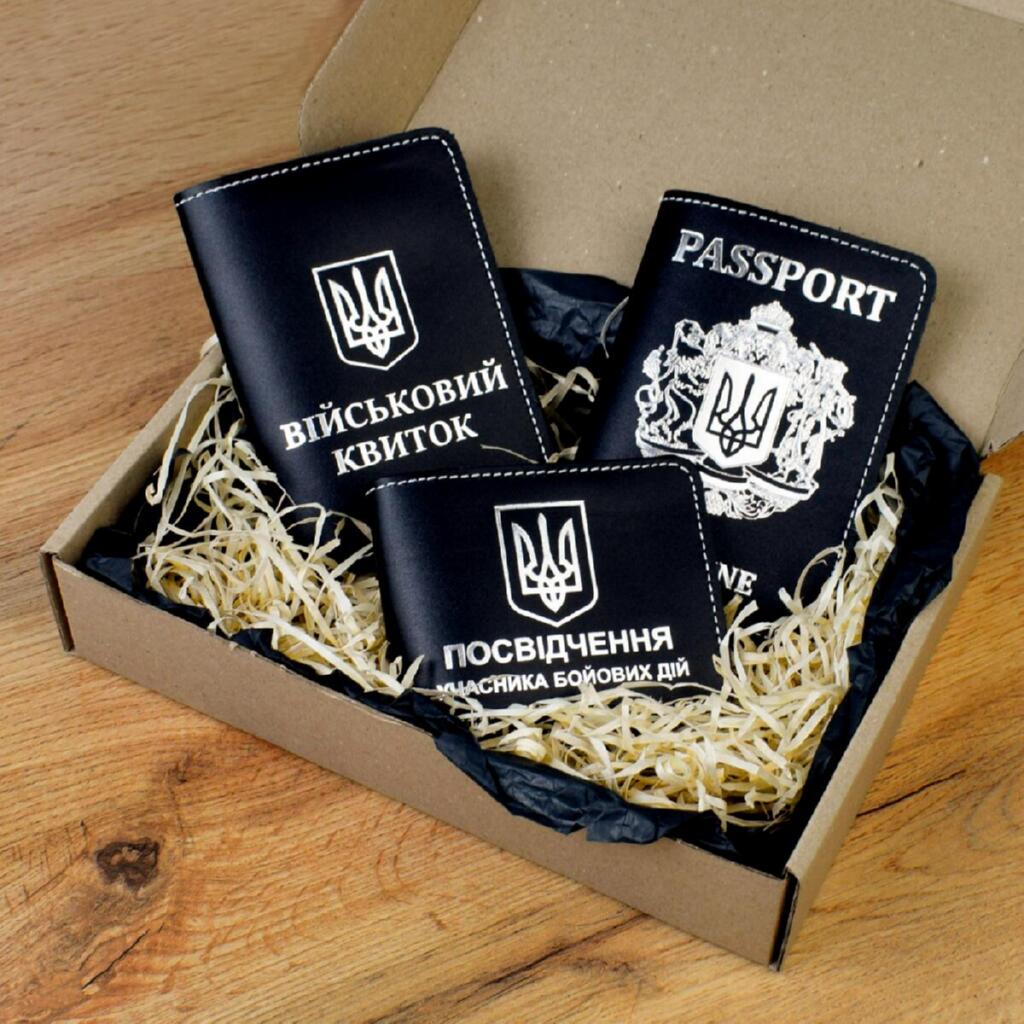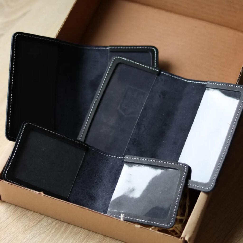 Шкіряний набір обкладинок — зручне рішення для зберігання основних посвідчень та документів в одному стилі. Аксесуари виглядають охайно, добре тримають форму та підходять для щоденного використання вдома, у подорожах і під час служби.