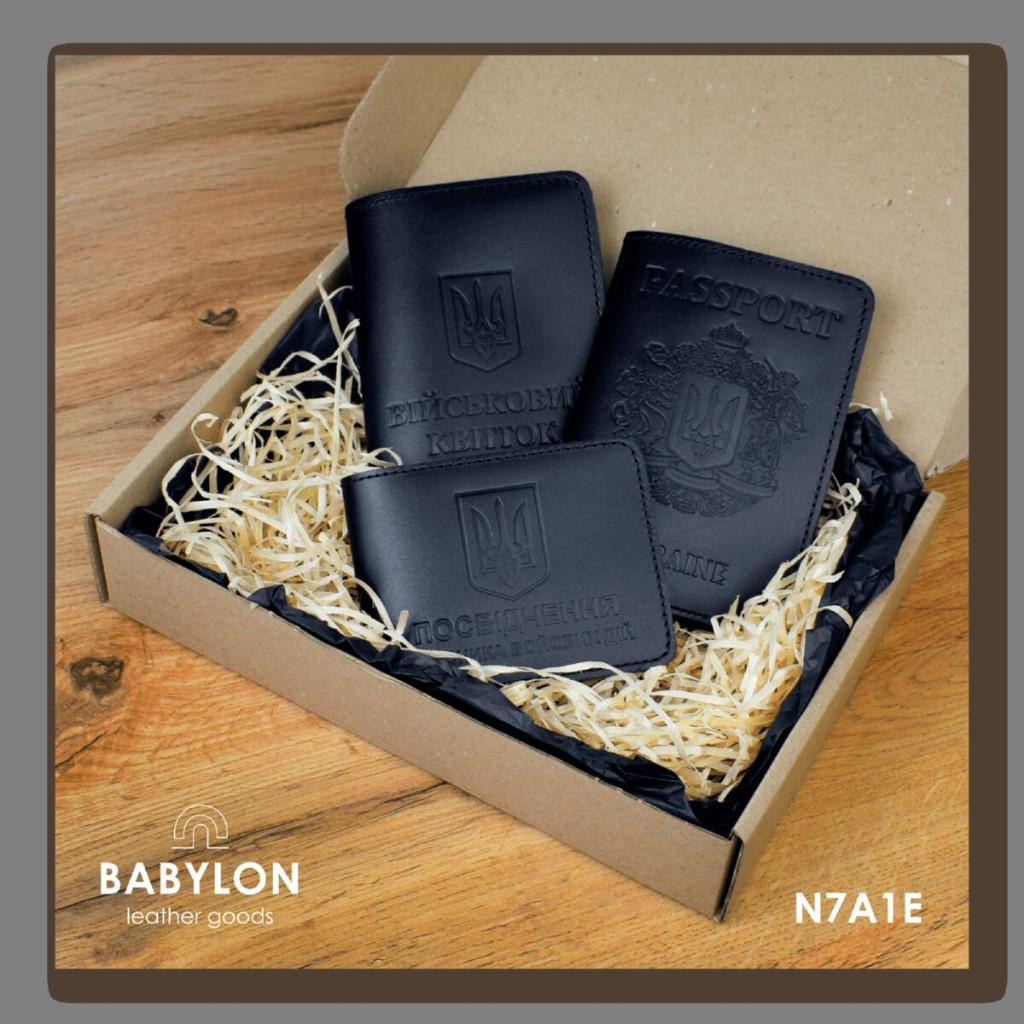 N7A1E Babylon Набір обкладинок: військовий квиток, УБД та Passport 26x17x5 см чорний, тиснення в колір обкладинки, шкіра