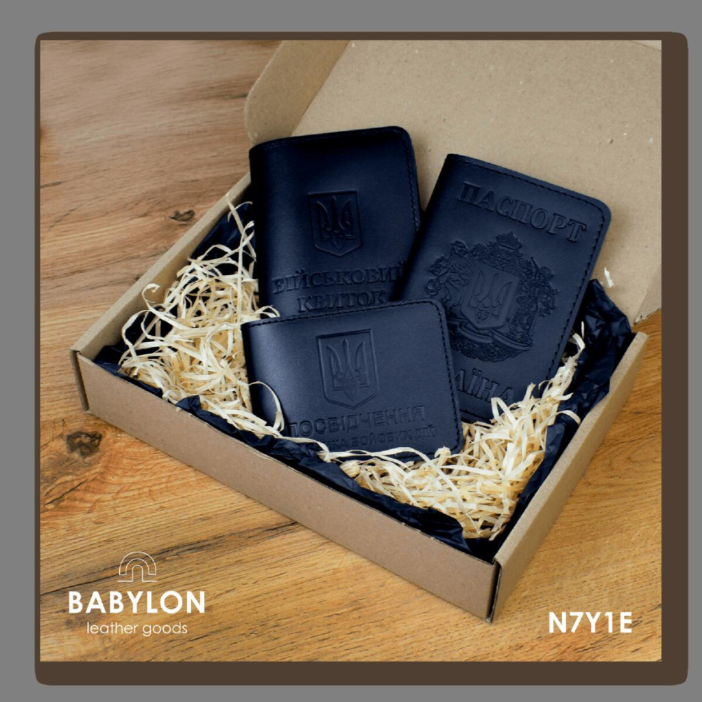 N7Y1E Babylon Набір обкладинок: військовий квиток, УБД та Паспорт 26x17x5 см чорний, чисте тиснення, шкіра