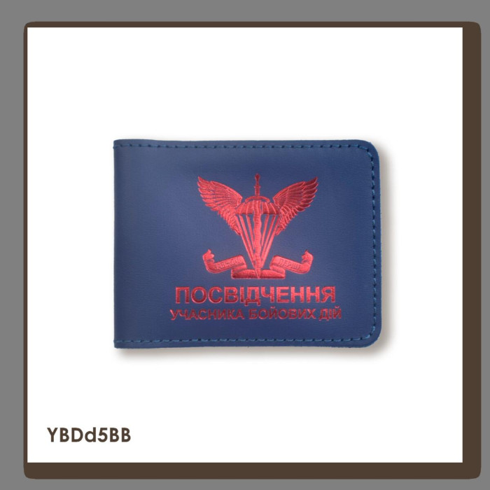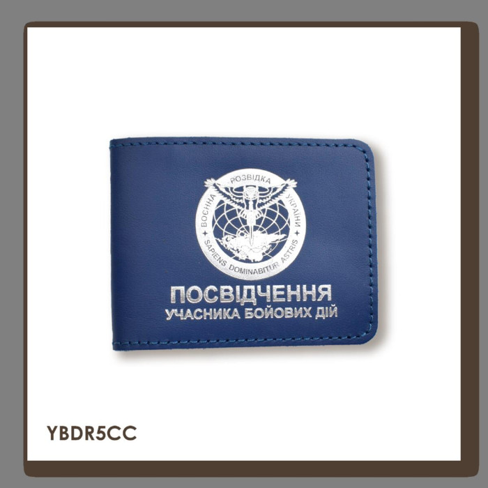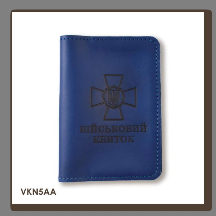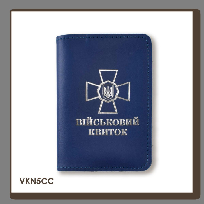 VKN5EE Babylon Обкладинка для військового квитка з емблемою НГУ 10x14 см синя, чисте тиснення, шкіра