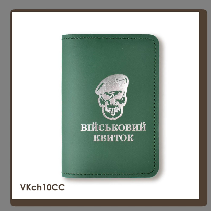VKch10CC Babylon Обкладинка для військового квитка Череп ДШВ 10x14 см зелена, срібне тиснення, шкіра