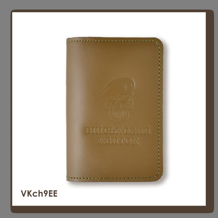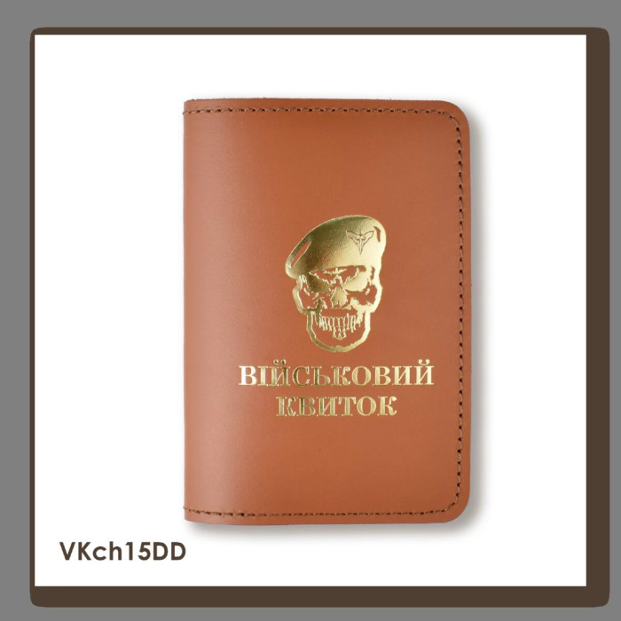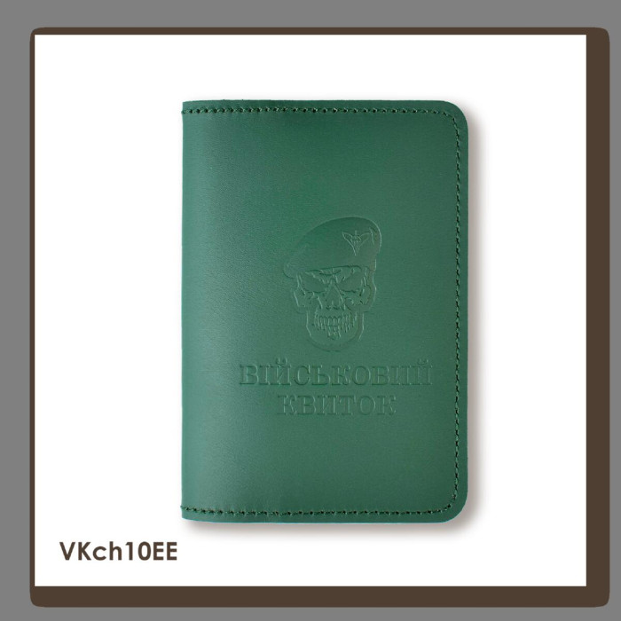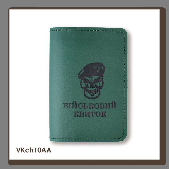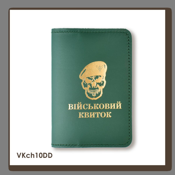 VKch10DD Babylon Обкладинка для військового квитка Череп ДШВ 10x14 см зелена, золоте тиснення, шкіра