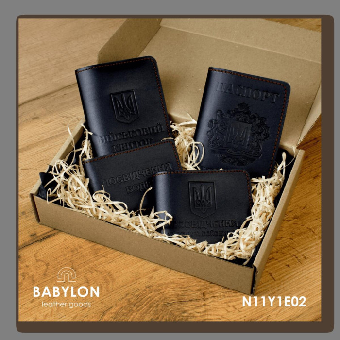 YBDN5CC Babylon Обкладинка для посвідчення УБД з емблемою НГУ 11x8,5 см синя, срібне тиснення, шкіра