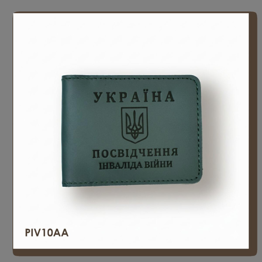 PIV10AA Babylon Обкладинка для посвідчення інваліда війни 11x7,5 см зелена, чорне тиснення, шкіра