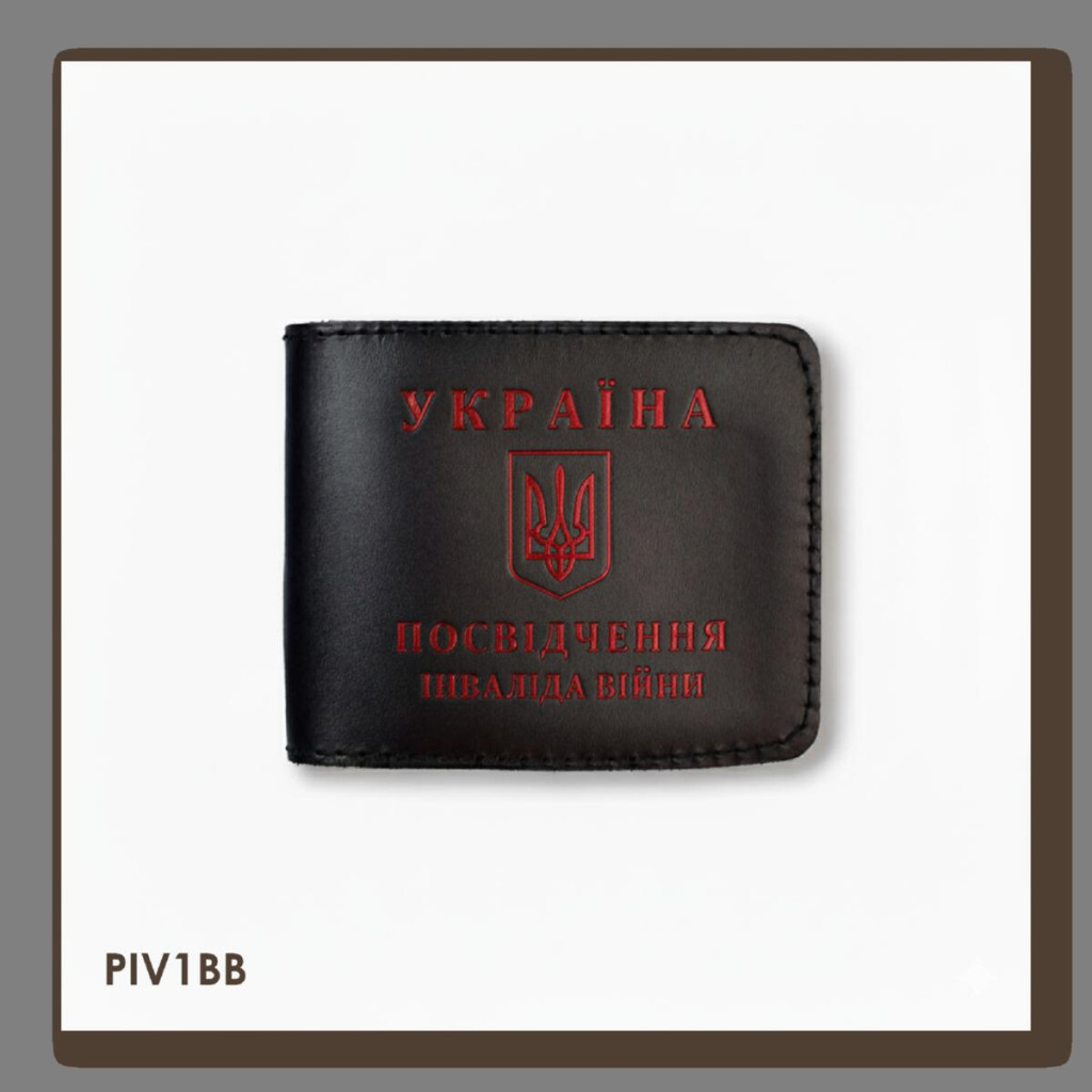 PIV1BB Babylon Обкладинка для посвідчення інваліда війни 11x7,5 см чорна, червоне тиснення, шкіра