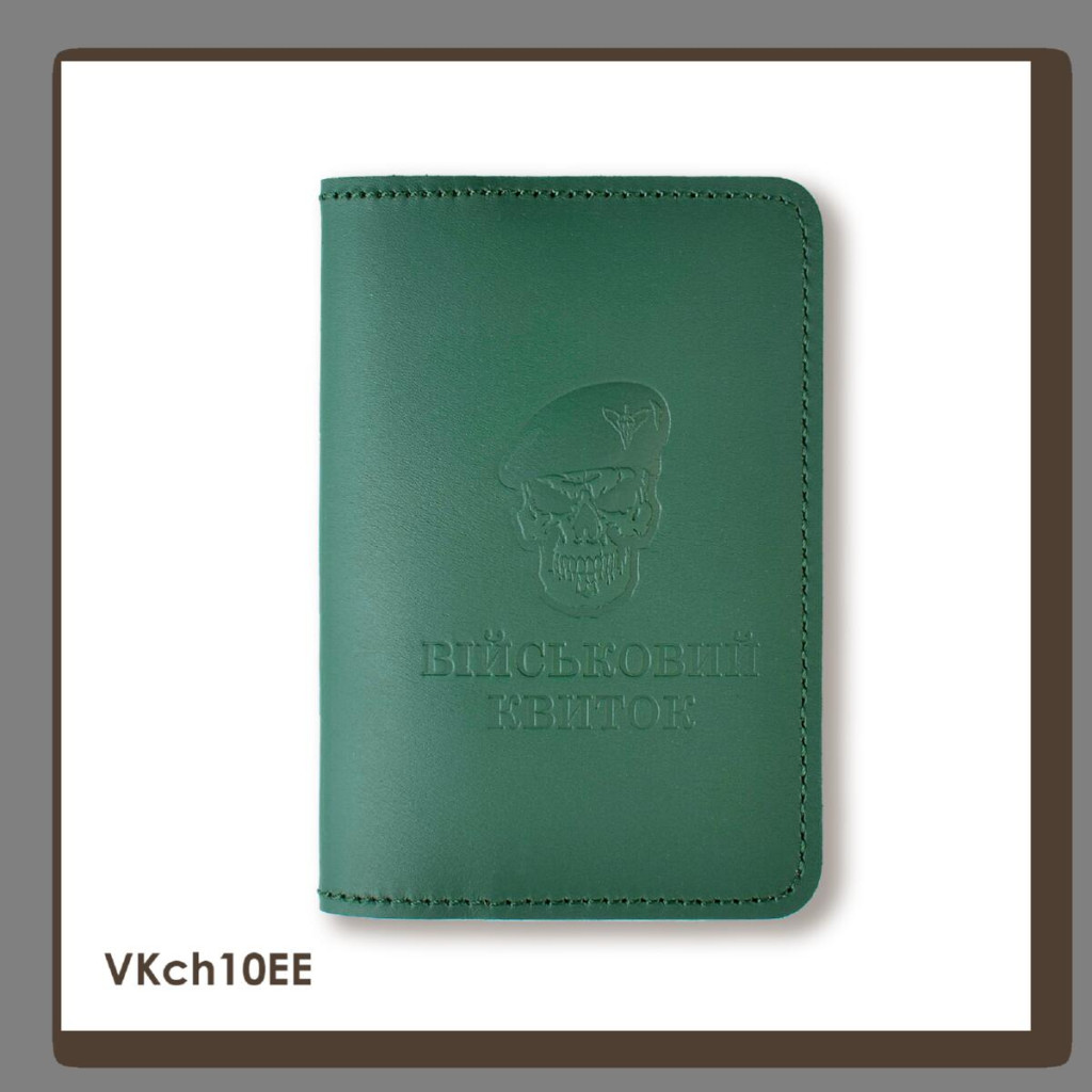 VKch10EE Babylon Обкладинка для військового квитка Череп ДШВ 10x14 см зелена, чисте тиснення, шкіра