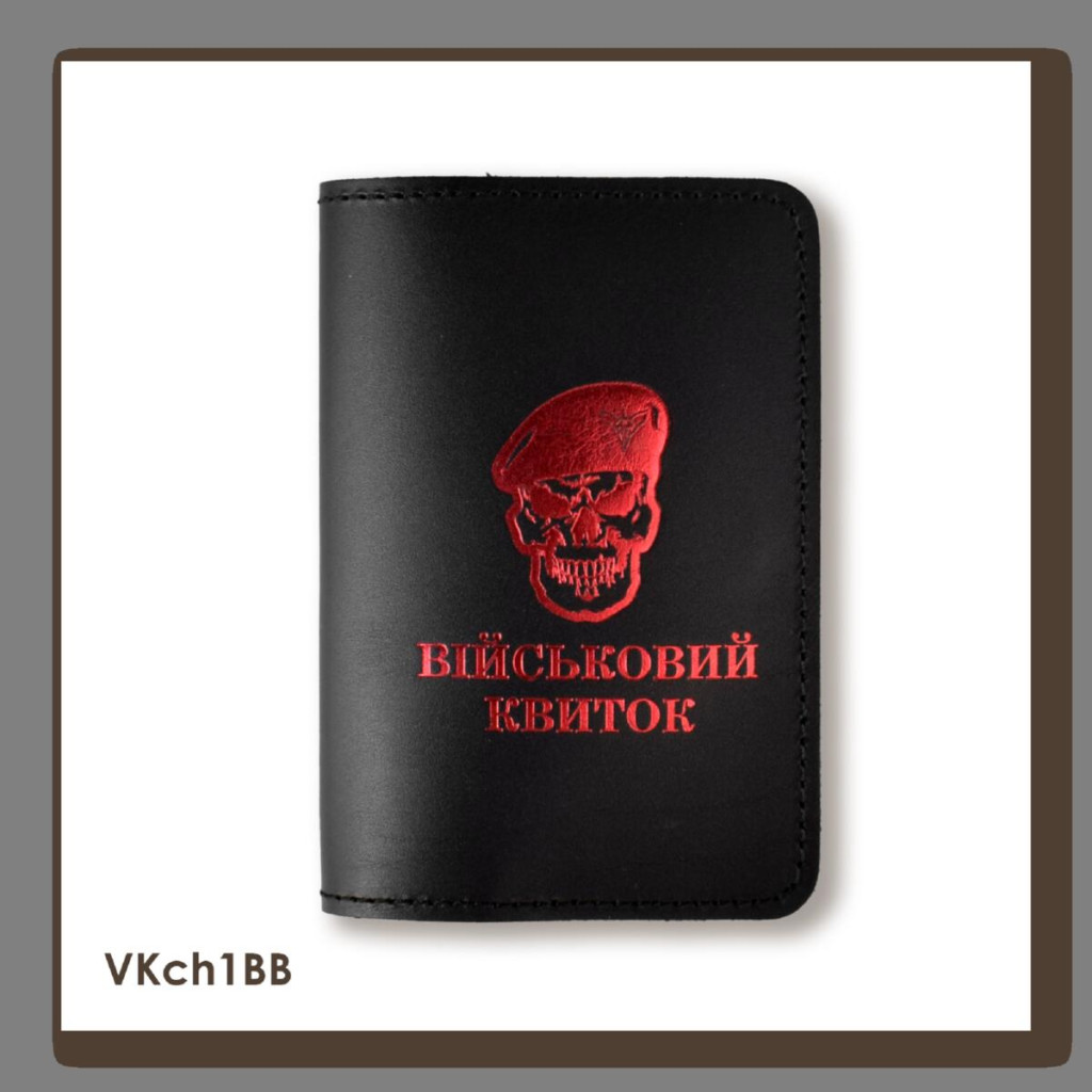 VKch1BB Babylon Обкладинка для військового квитка Череп ДШВ 10x14 см чорна, червоне тиснення, шкіра
