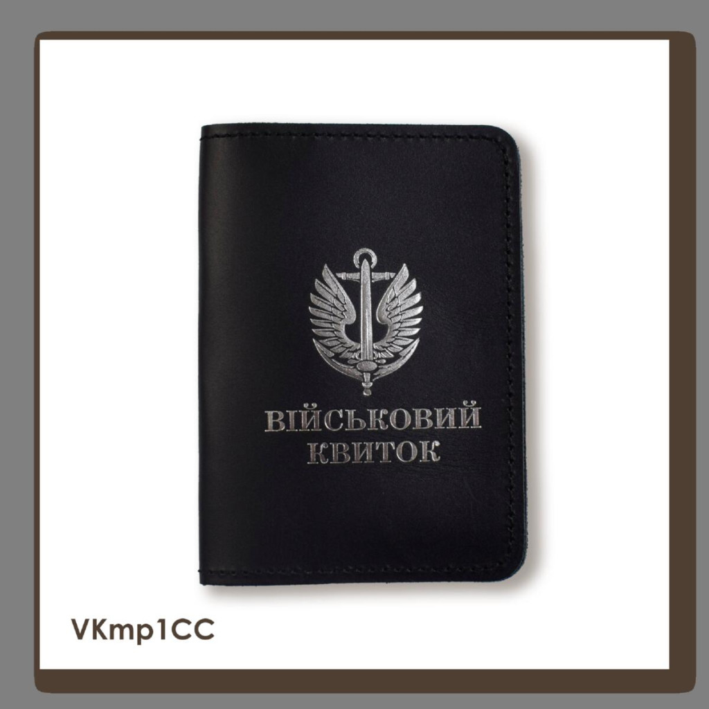 VKmp1CC Babylon Обкладинка для військового квитка Морська піхота 10x14 см чорна, срібне тиснення, шкіра