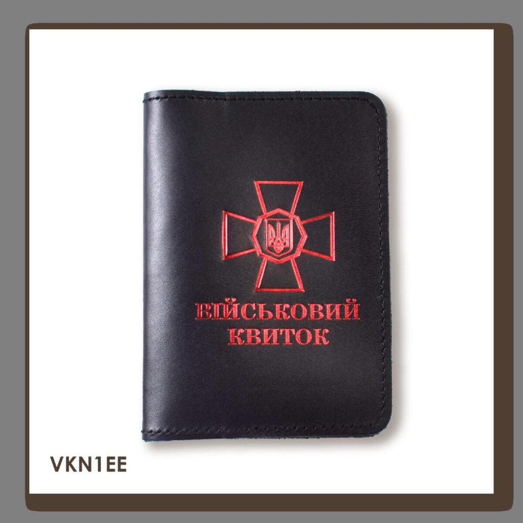 VKN1BB Babylon Обкладинка для військового квитка з емблемою НГУ 10x14 см чорна, червоне тиснення, шкіра