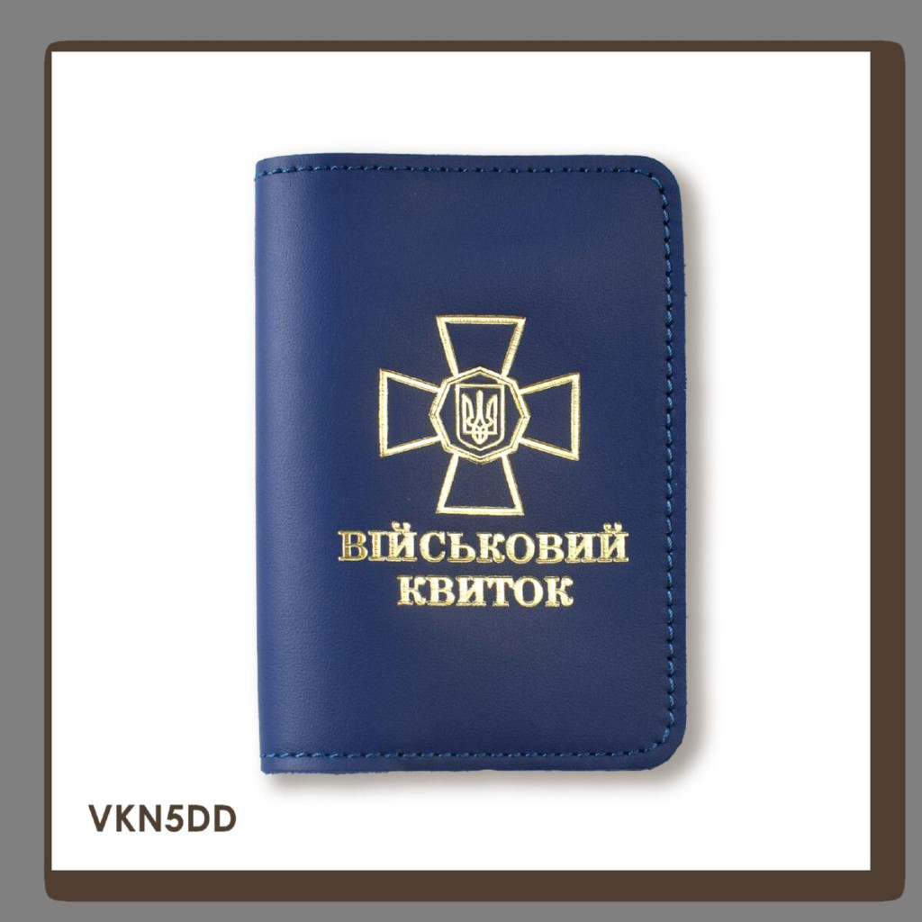 VKN5DD Babylon Обкладинка для військового квитка з емблемою НГУ 10x14 см синя, золоте тиснення, шкіра
