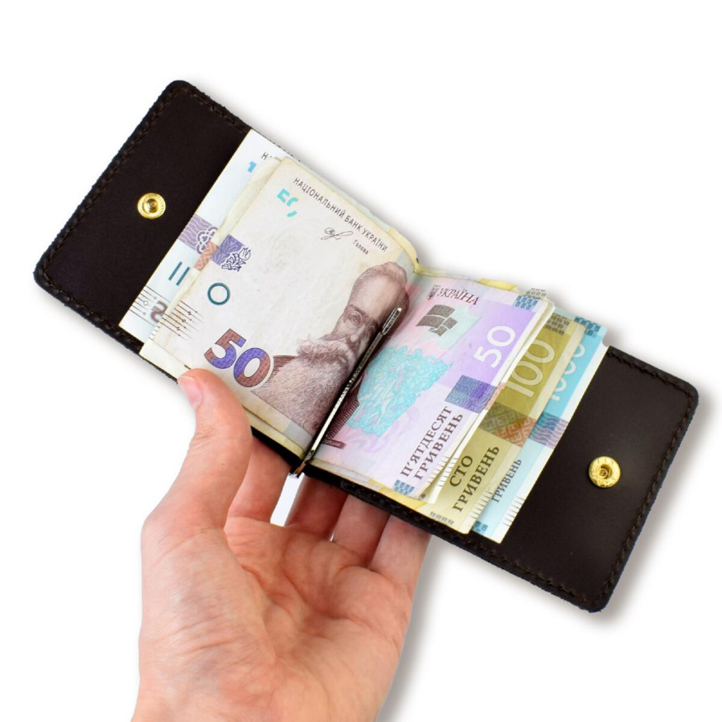 Такий базовий шкіряний затискач для купюр та карток стане універсальним щоденним аксесуаром і доречним подарунком для тих, хто цінує лаконічний стиль та якісні шкіряні вироби.