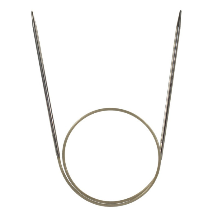 Кругові спиці складаються з двох жорстких кінців та гнучкого кабелю між ними. Незнімна конструкція забезпечує стабільне з’єднання та оптимальне ковзання петель під час роботи. У наявності варіанти довжиною від 25 до 150 см, що дозволяє обрати інструмент під конкретний проєкт. Доступні тонкі, середні та товсті діаметри.