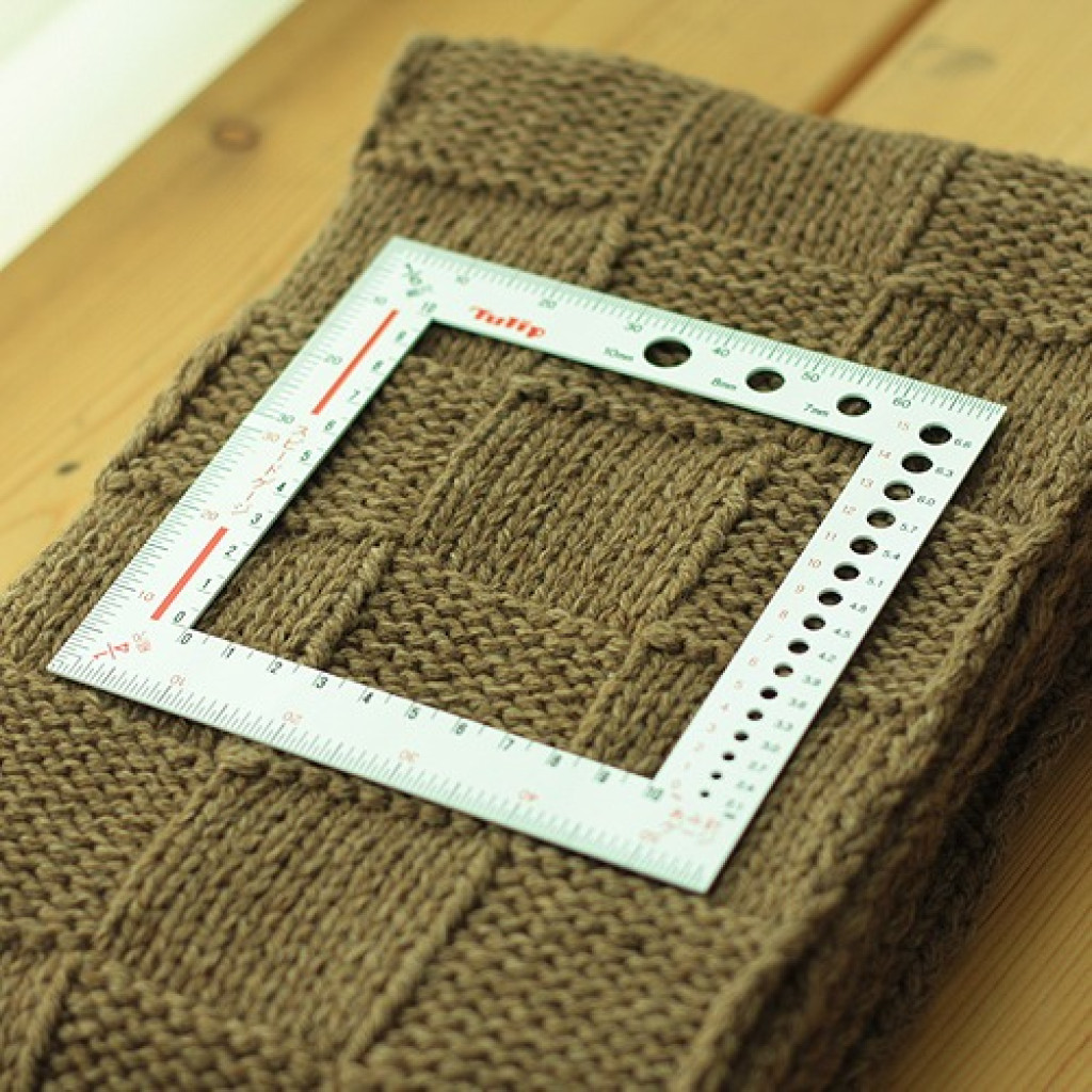 Калібрувальник для спиць Tulip — це практичний інструмент для рукоділля, який поєднує кілька корисних функцій в одному виробі. Внутрішня сторона лінійки призначена для зручного підрахунку петель і визначення щільності в’язання, тоді як зовнішній масштаб дає змогу будувати зменшені вироби у масштабі 1:4 або 1:5, що особливо зручно при плануванні дизайну.
