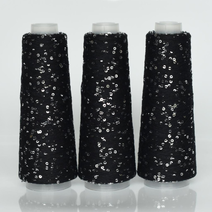 007 Infinity Yarn Пряжа паєтки 3 мм на котоні, Чорний + срібло 100 г – 800 м