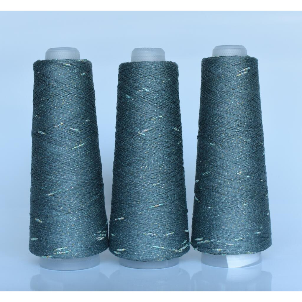 Пряжа зі 100% віскози. Декоративний ефект забезпечує вбудована нитка люрексу, що створює м’яке мерехтіння без надмірної жорсткості полотна. Має шовковистий блиск завдяки віскозі та люрексу, петлі виходять рівними, добре тримає візерунки, лицьову гладь, ажури.