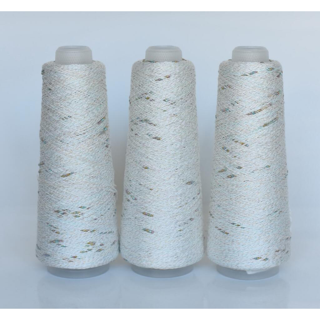 25 Пряжа Visco Knot Infinity Yarn, 100гр - 500м, теплий білий+мультіколор, 100% віскоза з люрексом