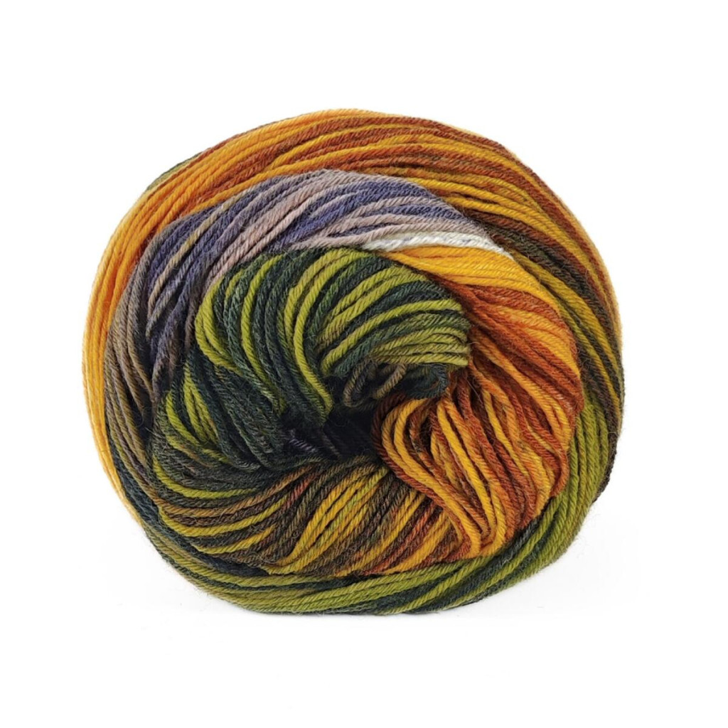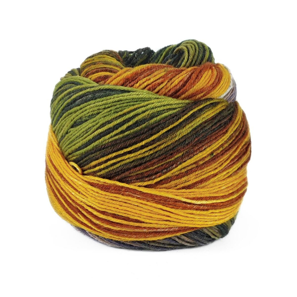 Полотно виходить рівним, еластичним і чітким по структурі, що особливо важливо для шкарпеткових виробів. Завдяки фарбуванню з плавними переходами кольорів нитка формує малюнок у процесі в’язання без додаткових зусиль.