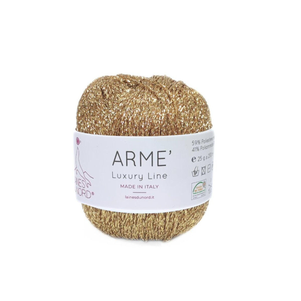 Пряжа Laines du Nord Arme - ультратонка легка нитка з металевим ефектом, створена для того, щоб додавати виробам делікатного блиску та «ювелірного» акценту. Вона добре працює як самостійно, так і в парі з іншою пряжею, коли потрібно підкреслити фактуру полотна та зробити в’язання більш святковим і виразним.
