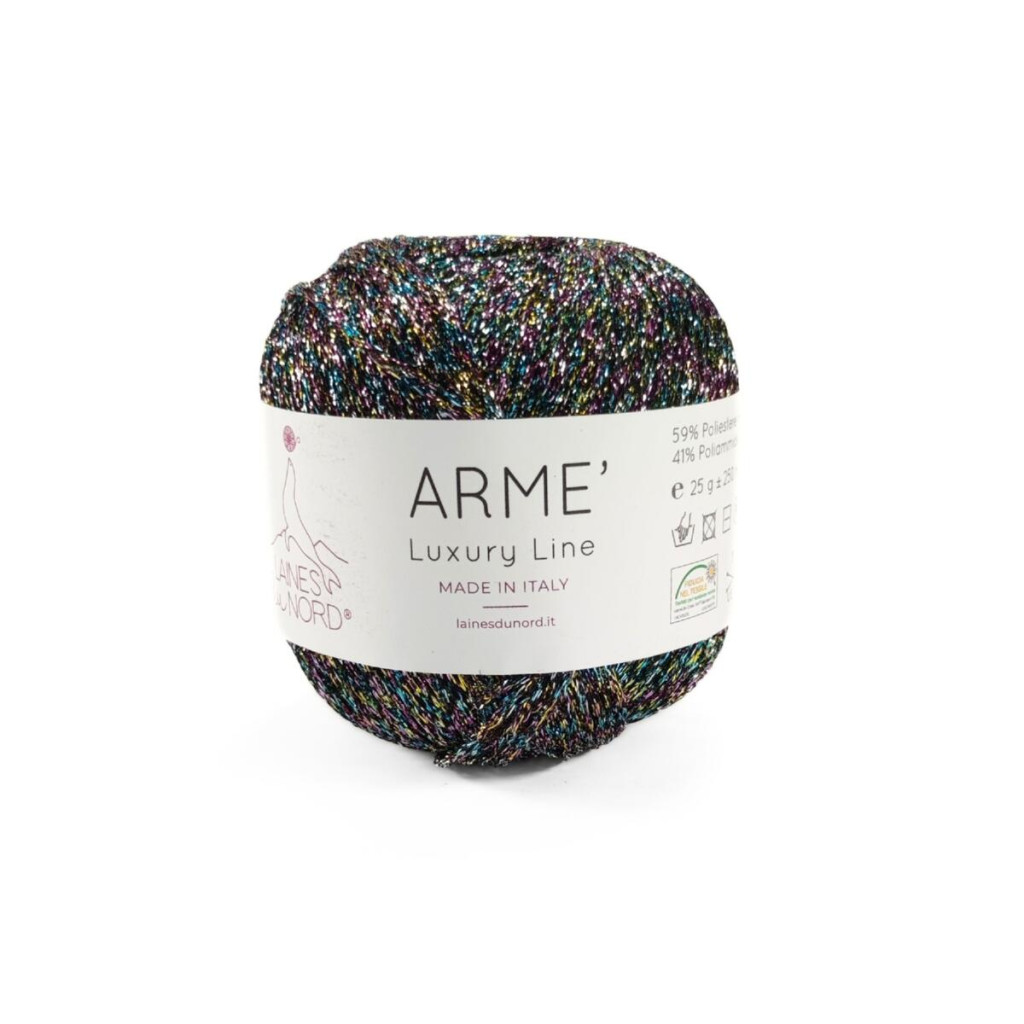 Пряжа Arme зручно використовувати як додаткову нитку разом із вовною, мериносом, мохером, альпакою або бавовною: для смужок, облямівок, манжетів, комірів, кокеток, окремих елементів візерунка чи легкого «сяйва» по всьому полотну. Також нитка підходить для тонких аксесуарів і декоративних дрібниць, якщо в’язати її окремо.