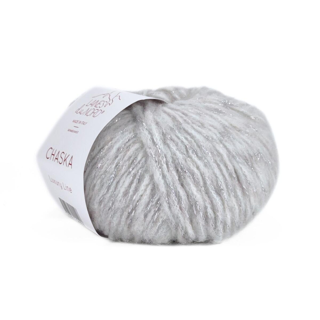 5 Пряжа Laines du Nord Chaska, 25г - 125м, перлинно-сірий, 34% вовна, 10% кашемір, 16% бавовна, 29% нейлон, 11% металевий PL
