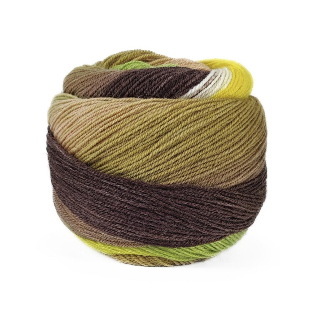 Пряжа Laines du Nord Harmonious Sock - шкарпеткова нитка з яскравими відтінками, які плавно й гармонійно змішуються у полотні, створюючи енергійний та впізнаваний візерунок. Вона поєднує м’якість і міцність: вовна у складі mulesing-free та має обробку без хлору, а додавання нейлону підвищує зносостійкість, що особливо важливо для шкарпеток і виробів, які активно носяться.