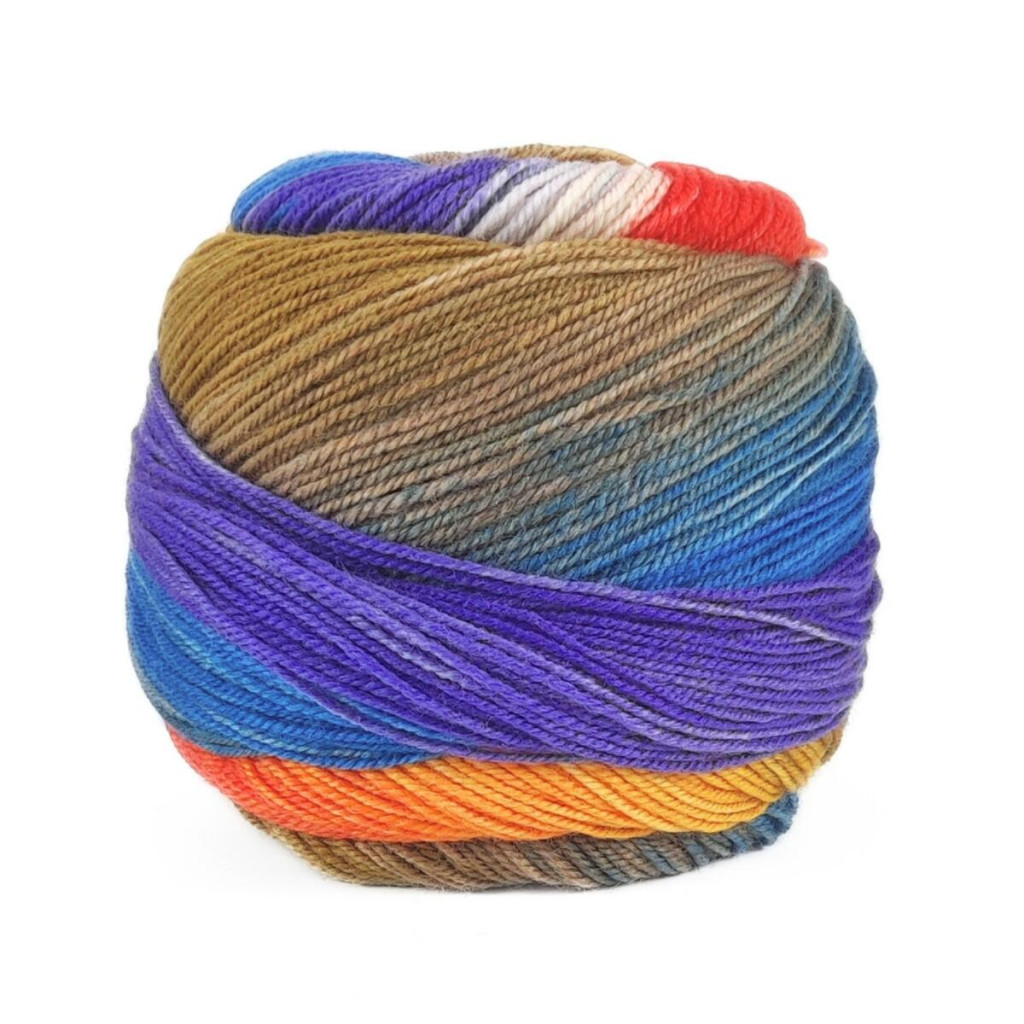 Пряжа Laines du Nord Harmonious Sock - шкарпеткова нитка з яскравими відтінками, які плавно й гармонійно змішуються у полотні, створюючи енергійний та впізнаваний візерунок. Вона поєднує м’якість і міцність: вовна у складі mulesing-free та має обробку без хлору, а додавання нейлону підвищує зносостійкість, що особливо важливо для шкарпеток і виробів, які активно носяться.