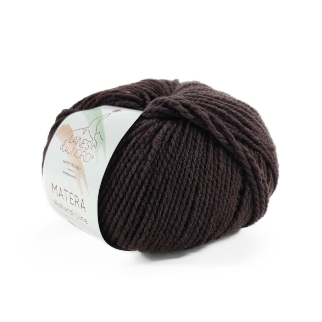 Пряжа Laines du Nord Matera - 100% італійська мериносова вовна Gentile з Апулії. Нитка має середню товщину та легку пружність, добре «лягає» на спиці, формує рівне полотно й комфортно відчувається у теплих сезонних виробах. За описом виробника, вона доволі витривала, трохи суха на дотик і має властивість протидіяти появі ковтунців, тому підходить для речей, які плануєте носити регулярно.