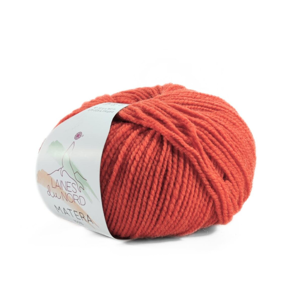 Пряжа Laines du Nord Matera - 100% італійська мериносова вовна Gentile з Апулії. Нитка має середню товщину та легку пружність, добре «лягає» на спиці, формує рівне полотно й комфортно відчувається у теплих сезонних виробах. За описом виробника, вона доволі витривала, трохи суха на дотик і має властивість протидіяти появі ковтунців, тому підходить для речей, які плануєте носити регулярно.
