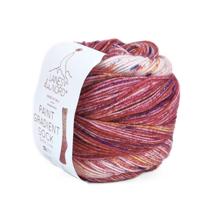 Laines du Nord Paint Gradient Socks — це пряжа для створення унікальних шкарпеток з плавним градієнтним переходом кольорів. Поєднання 75% вовни та 25% нейлону забезпечує тепло, м’якість і водночас міцність і зносостійкість виробів.