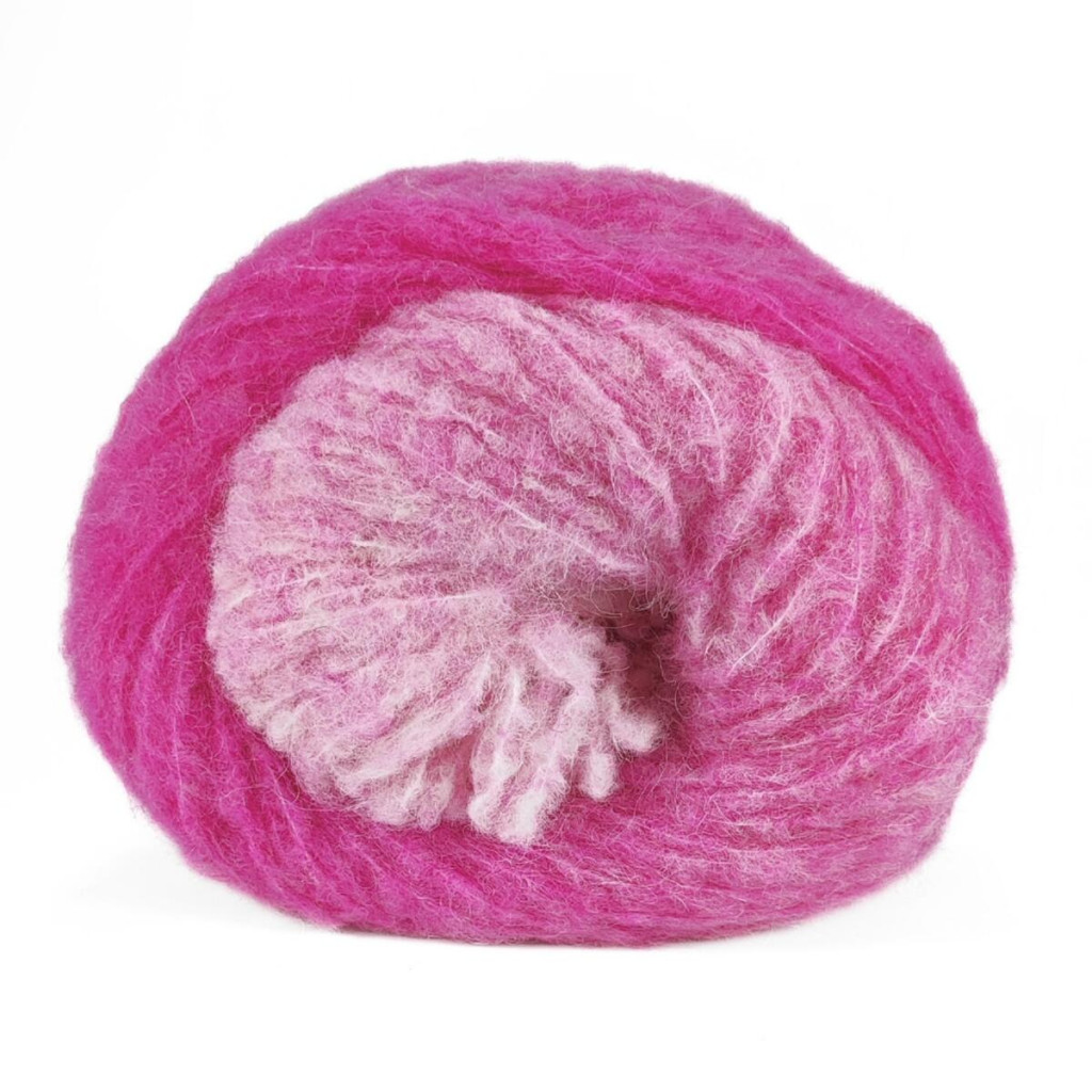 Полотно виходить легким, об’ємним і пухнастим, з ніжною фактурою та м’яким ворсом. Завдяки ефекту d?grad? кольори плавно переходять один в один, створюючи гармонійний візерунок без складних технік в’язання.