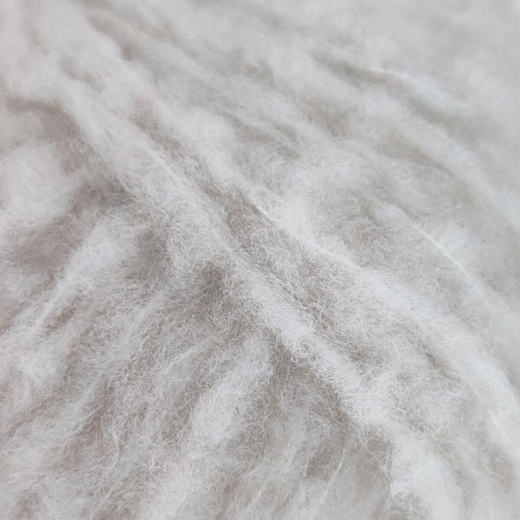 Полотно виходить повітряним, об’ємним і пухнастим, з делікатною фактурою та м’яким ворсом. Нитка красиво розкривається у в’язанні, додаючи виробам легкості та витонченості.