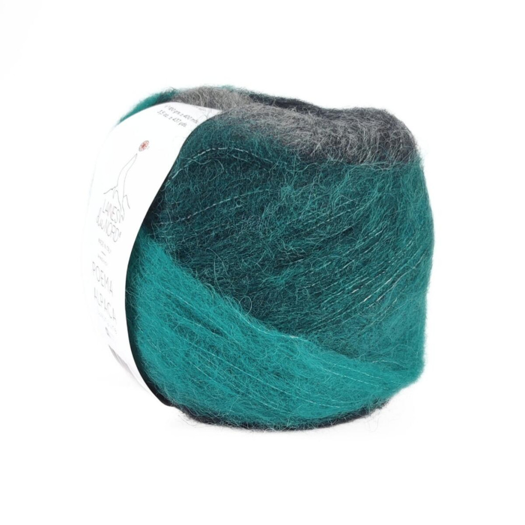 Пряжа Laines du Nord Poema Alpaca поєднує м’якість альпаки та тепло вовни, доповнені нейлоном для міцності. Плавні переходи кольорів створюють ефект градієнта, який гармонійно розкривається у полотні без необхідності змінювати нитку.