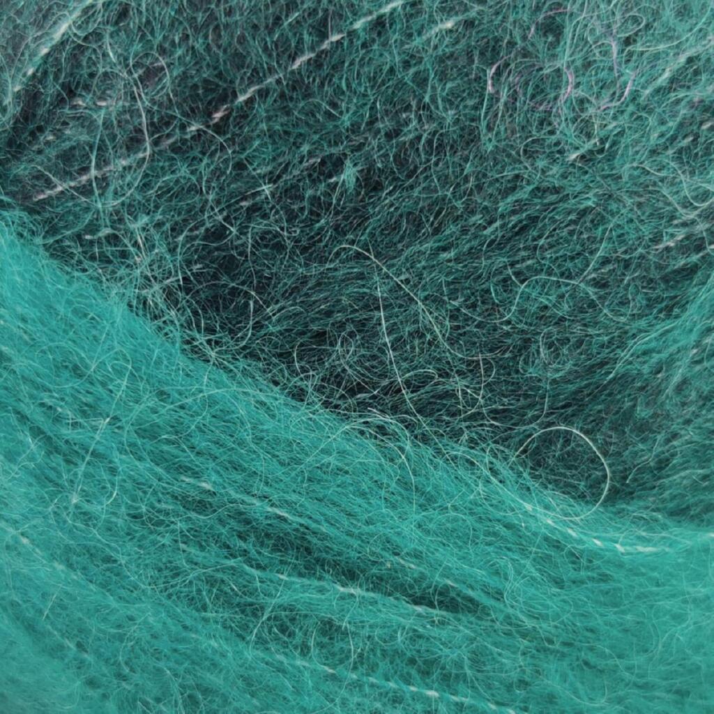 Нитка легка, повітряна та з м’яким пухнастим ворсом, приємна на дотик і комфортна у носінні. Полотно виходить об’ємним, добре тримає форму та виглядає виразно завдяки поєднанню фактури і кольору.