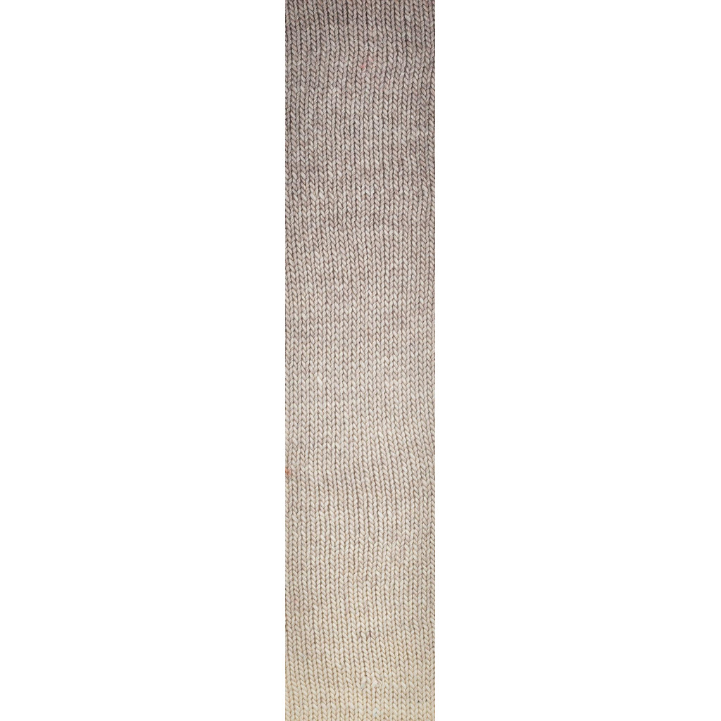 Нитка має плавні переходи кольорів, що створюють ефект градієнта без необхідності зміни клубків у процесі в’язання. Полотно виходить рівним, м’яким і пластичним, добре драпірується та підкреслює фактуру візерунків.