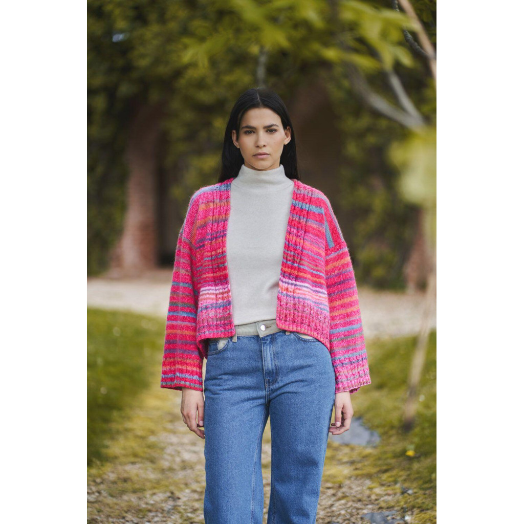 Пряжа Laines du Nord Poema Stripes — це вовняна пряжа з виразним ефектом смуг, що формується завдяки секційному фарбуванню. Нитка створює чіткі переходи кольорів і дозволяє отримати оригінальний малюнок без складних візерунків.