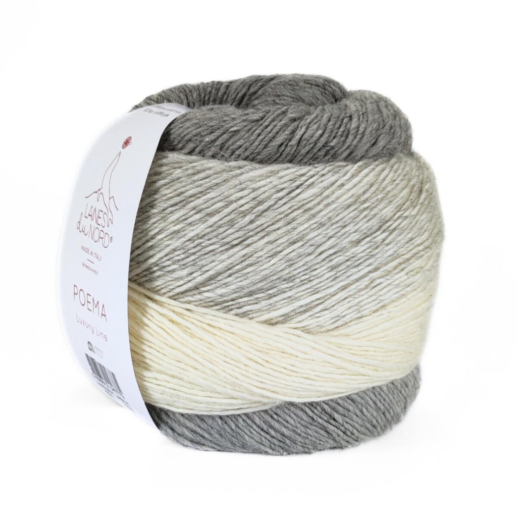 Пряжа Laines du Nord Poema — це 100% вовна з плавними переходами кольорів, які формують ефект градієнта. Поєднання відтінків створює гармонійне полотно без необхідності змінювати нитку під час роботи.