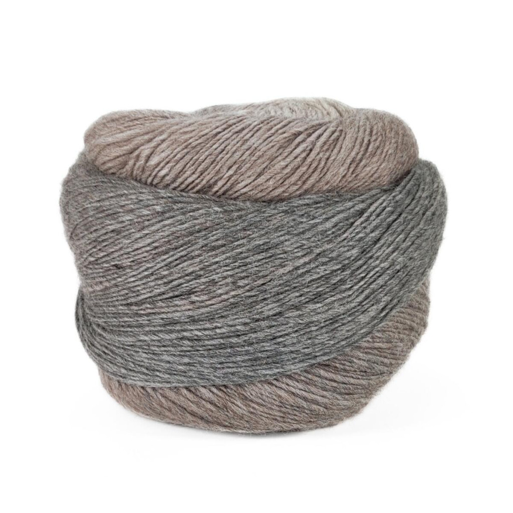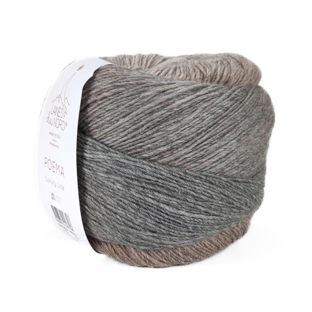Пряжа Laines du Nord Poema — це 100% вовна з плавними переходами кольорів, які формують ефект градієнта. Поєднання відтінків створює гармонійне полотно без необхідності змінювати нитку під час роботи.