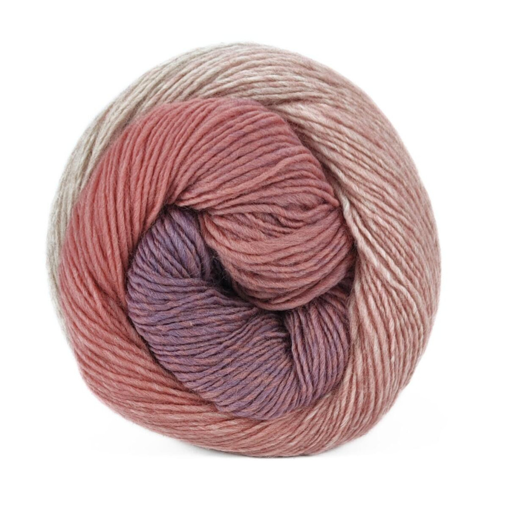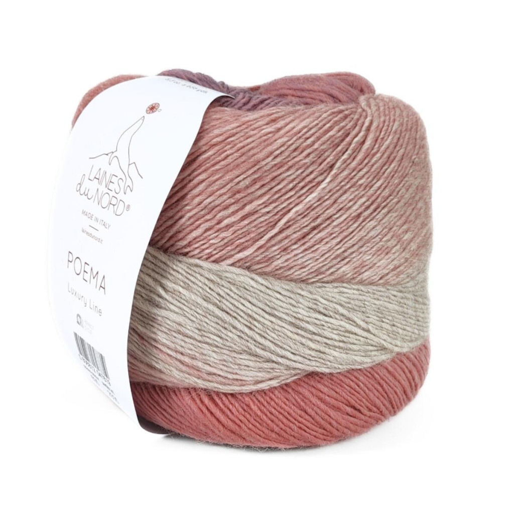 Пряжа Laines du Nord Poema — це 100% вовна з плавними переходами кольорів, які формують ефект градієнта. Поєднання відтінків створює гармонійне полотно без необхідності змінювати нитку під час роботи.