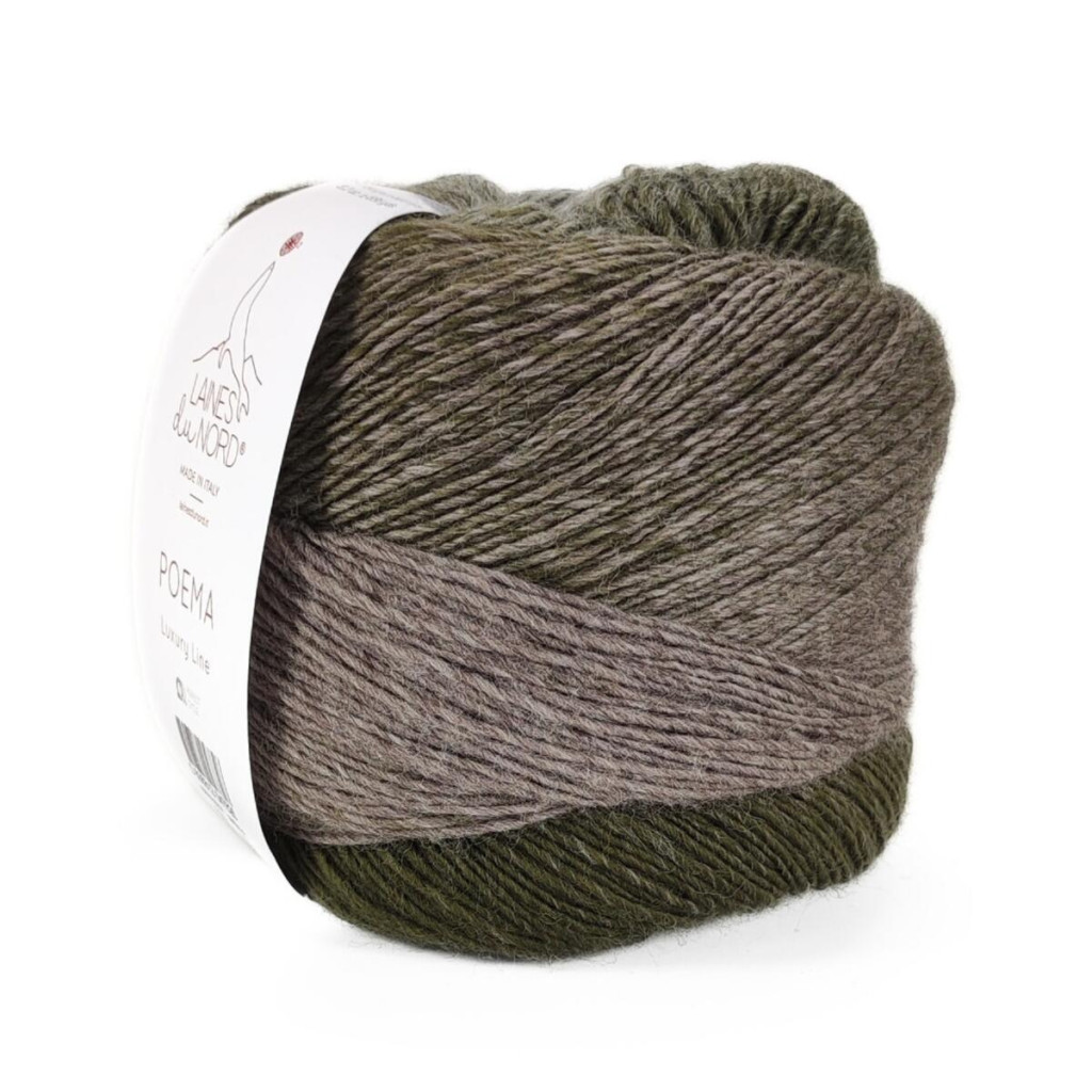 Пряжа Laines du Nord Poema — це 100% вовна з плавними переходами кольорів, які формують ефект градієнта. Поєднання відтінків створює гармонійне полотно без необхідності змінювати нитку під час роботи.